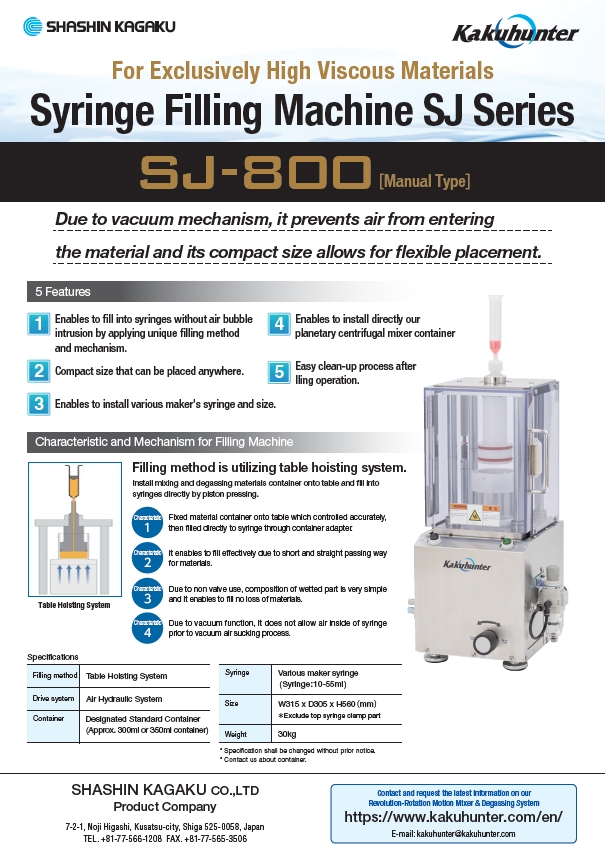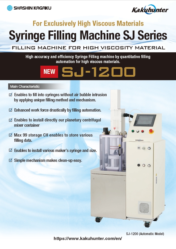 Kakuhunter revolution-rotation planetary centrifugal mixer was developed by SHASHIN KAGAKU and it can meet different application needs. Equipped with the unique revolution and rotation individual speed control system, the mixer is able to perform mixing and degassing simultaneously under the mostly optimized conditions. Kakuhunter mixers are widely used in the mixing and degassing of various materials for different applications in different industries.